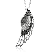 The contrasting colors make this peice unique when you take the over all design into account. There are not many women running around with a black and white angel wing around their neck. At just over 1.6" tall the peice is well constructed and lets you see enough detail for the price it sells for. The diamonds are of good quality for the price. What it boils down to is uniqueness and good quality for the money you put down. A good combination for these times.