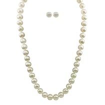 White Freshwater Cultured Pearl Necklace and Stud Earrings Set with Sterling Silver Clasp (9-10mm)