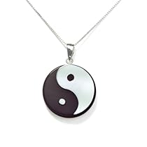 Sterling Silver Charcoal Chinese Jade Yin Yang Disc Pendant