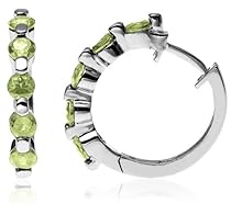 Sterling Silver Peridot Hoop Earrings (0.7" Diameter)