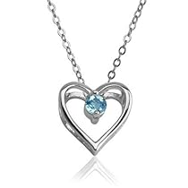 Sterling Silver Blue Topaz Heart Pendant 18"