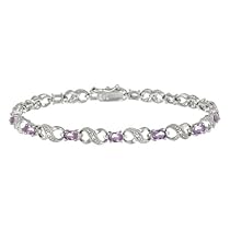 Sterling Silver Amethyst X/O Bracelet with Diamond-Accent 7.25"