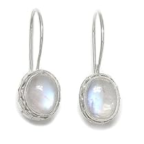 Sterling Silver Rainbow Moonstone Latch Back Earrings by Sajen