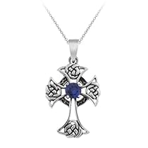 Sterling Silver Sapphire Celtic Cross Pendant 18"