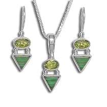 Sterling Silver Malachite and Peridot Pendant and Earrings Set by Sajen