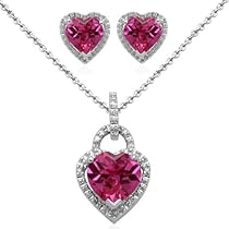 Sterling Silver Checkerboard Heart Created Pink Sapphire And Diamond Ring Pendant And Earring Box Set